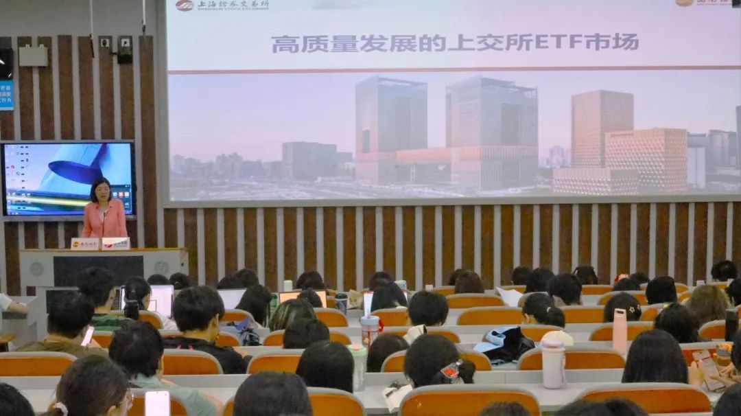 讲座伊始,王红娟从大赛的背景与意义、赛制规则、参赛要求、亮点与特色等方面向同学们一一解读“上证杯”理财规划大赛,并鼓励同学们积极报名参与。随后,王红娟以《高质量发展的上交所ETF市场》为题,分别从ETF的定义、ETF的重要地位、ETF的主要类别等角度展开,结合最新的数据和鲜活的案例,以通俗易懂的方式向同学们进行汇报。期间老师与同学们积极互动,现场学术氛围浓烈。