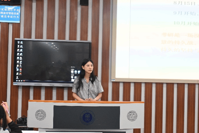 学院副院长谌仁俊围绕学院历史、师资力量、专业介绍等学院基本情况进行系统梳理与深入解读。从学科建设的坚实根基,到人才培养的多元路径;从领先的科研平台,到广阔深入的国际合作格局,谌仁俊老师通过生动的案例和详实的数据,给同学们展现了学院研究生培养的大有可为,表达了学院对优秀学子的渴求,并建议同学们以积极向上的态度,踏踏实实认真备考,全力以赴。