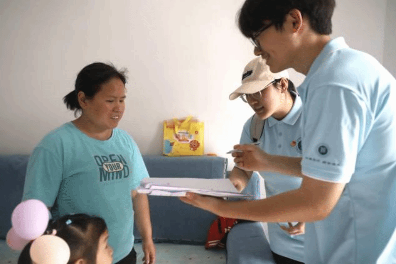 图 5鸿鹄实践队队员在蔡湾村开展入户调研