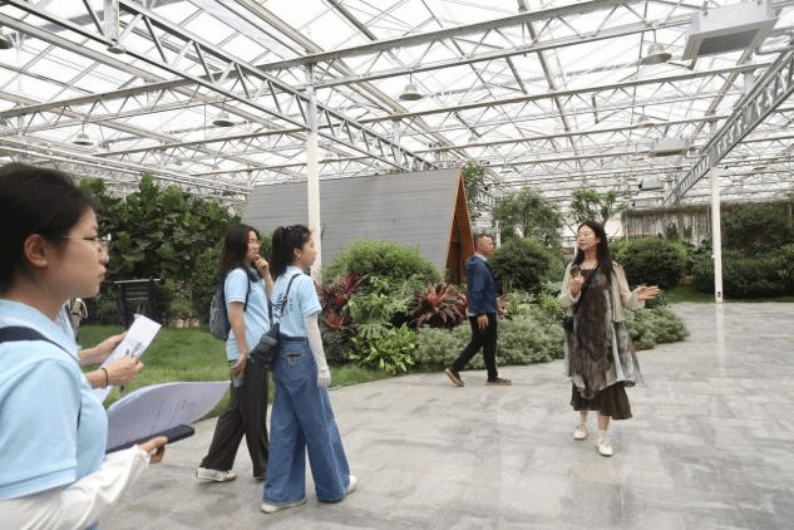 队员们首站来到三官殿街办蔡湾村蔬菜种植基地。在基地工作人员的详细讲解下,大家深入了解了智能设施农业的运营模式、技术应用与发展困境。从智能温控大棚蔬果培育的技术研发,到农产品产销链条的搭建,队员们边走边看、边听边问,将课堂所学与农业实践对接,积极探寻科技赋能农业增效的路径。