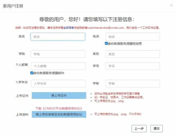学生 / 其他人员:上传学生证 / 校园卡,签署《数据使用协议》,激活后等待账户开通。
