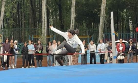 跳高健儿如鹰展翅,赢得全场阵阵喝彩
