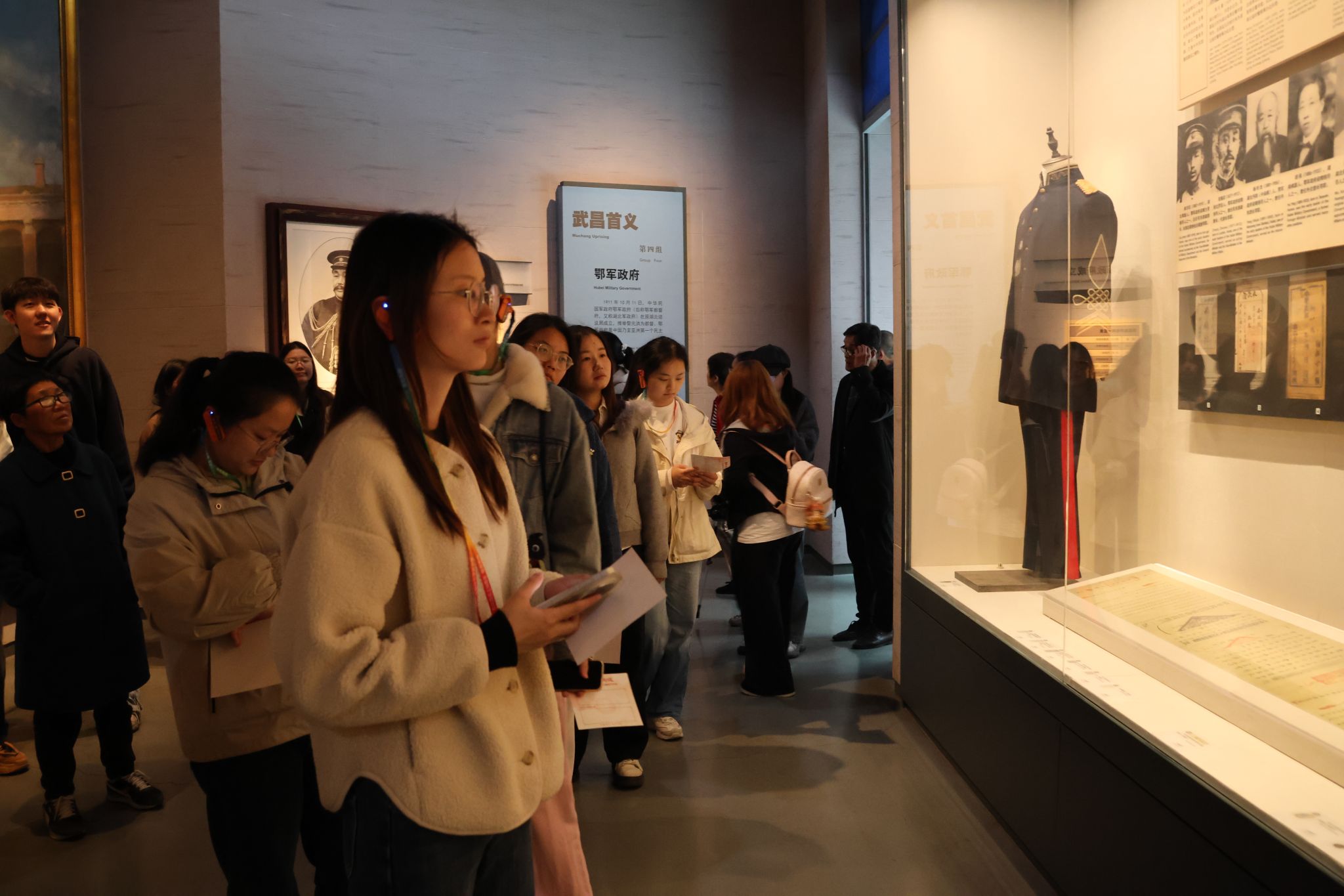 下午13 时,研学队伍抵达辛亥革命博物院南区,在专业讲解员引导下,同学们循着历史脉络开启研学之旅。大家首先走进辛亥革命博物院第一、二展厅,围绕“晚清中国—— 革命原起”展陈主线,回望近代中国救亡图存的艰辛探索,在不平等条约刻石、甲午海战影像中感受民族危机,从洋务运动、戊戌变法的探索到革命思潮的兴起,明晰辛亥革命爆发的历史必然性。随后,大家继续走进第三、四展厅,在“武昌首义——创建共和”的展陈中,全面了解武昌起义的完整历程,真切感受亚洲首个民主共和政权诞生的坎坷与辉煌,铭记革命先辈的牺牲与奉献。最后,同学们步入“辛亥百年”第五展厅,体悟革命的历史影响与时代价值,从学术研究、旧址保护到精神赓续,深刻认识到辛亥革命对中国近代化的推动作用,传承红色基因、勇担时代使命的理想信念也愈发坚定。