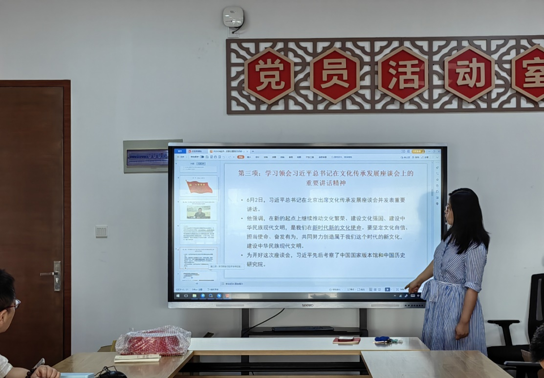 首先,肖红蓉同志带领各位教师党员学习领会习近平总书记在中共中央政治局第五次集体学习和文化传承发展座谈会上的重要讲话精神,高度肯定了新时代教育事业取得的显著成就,以及深刻解读了“坚定文化自信,就是坚持走自己的路”的内涵。
