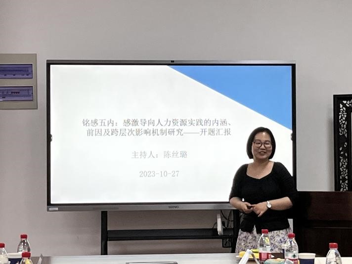 接着,陈丝璐老师进行了题为《铭感五内:感激导向人力资源实践的内涵、前因及跨层次影响机制研究》的主题汇报。她围绕研究主题,通过两个具体生动的例子,阐述了研究背景,前期调研中就组织感激模块的三个项目细化出多个模块。
