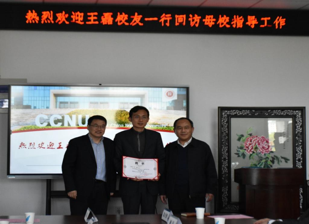 聂书记、涂院长为王磊校友颁发“特聘教授”证书