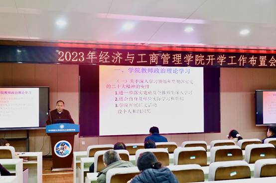 为切实做好新学期开学各项准备工作,谋划部署学院2023年春季学期及全年重点工作任务,2月11日下午,经济与工商管理学院于南湖综合楼10127召开2023年春季学期开学工作布置会。学院党政领导班子出席会议,全体教职工参加会议,会议由院长涂正革主持。