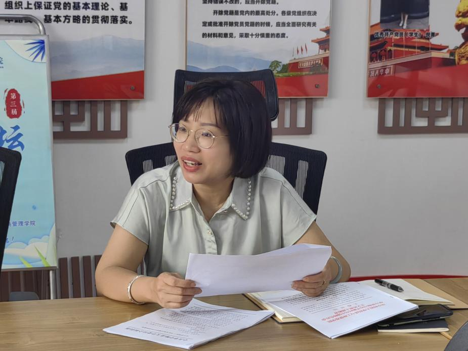 结合工作实际,同志们展开热烈讨论,积极交流学习心得与感悟。周斌老师从辅导员的深入调查研究工作角度谈了自己的体会,通过走访学生寝室与面对面交流的方式,补短板、防风险、通堵点,切实解决好学生的问题,把主题教育与有温度的教育做好,做实。雷晓婷老师谈到要围绕“学思想、强党性、重实践、建新功”的总要求,结合专业特色开展工作,积极推进暑期社会实践、教学实习实践、访企拓岗等。