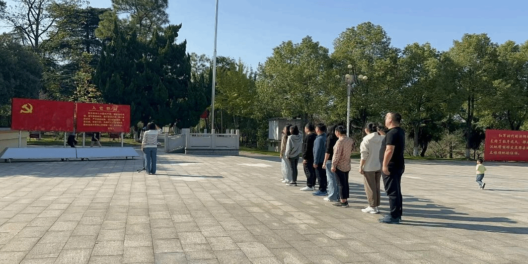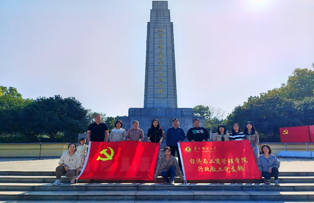 2023年10月22日,我院行政教工党支部赴洪湖红色教育基地开展10月份支部主题党日活动,在进行集中理论学习后,全体党员老师们参观了洪湖瞿家湾全国优秀爱国主义教育基地,湘鄂西苏区革命烈士纪念馆,并向革命先烈献花,重温入党誓词。本次活动由支部书记张林带队,党委书记张勇、副书记陈娟 、院办主任肖和容等13位老师参加了本次活动。