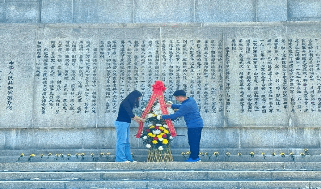 随后,行政支部全体教师前往洪湖湘鄂西苏区革命烈士纪念馆开展参访以及向革命烈士敬献花篮、重温入党誓词活动。革命烈士纪念馆内展示着第二次国内革命战争时期湘鄂苏区史实,概括而生动的再现了湘鄂西人民革命斗争的光辉历程。接下来,学院张勇书记和陈娟副书记代表支部向革命烈士敬献花篮。支部书记张林带领全体同志重温了入党誓词。