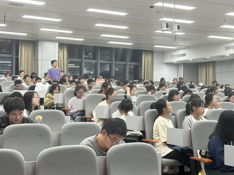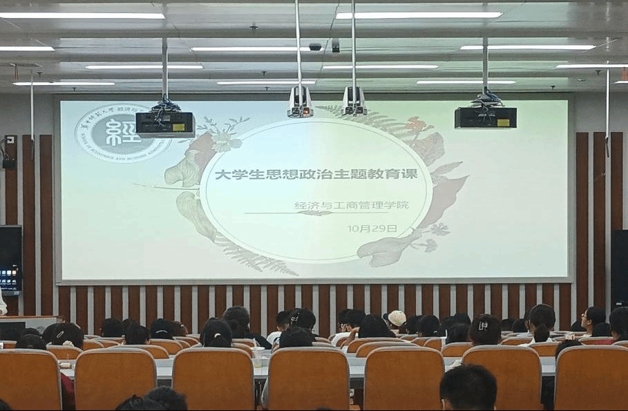2023年10月29日18:00,华中师范大学经济与工商管理学院大学生适应性主题思想政治课于南湖综合楼N223顺利开展,课程由2023级辅导员赵万主持,我院2023级全体本科生参加课程。