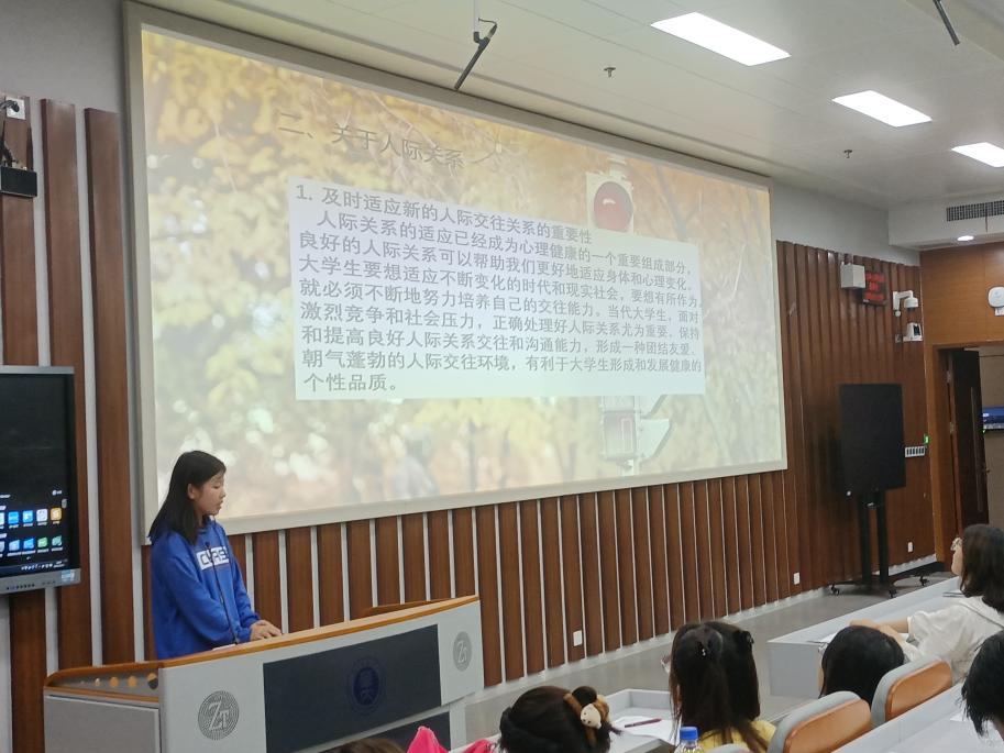 课程伊始,赵万指出适应能力是一个人成功面对各种生活变化和挑战的重要素质,大学的生活环境、学习方式和社交环境等都与高中有很大区别,因此培养大学生的适应能力对于顺利度过这一阶段至关重要。她希望同学们能尽快适应大学生活,遇到困难要及时向周围的老师朋友求助。随后,她就本次进行展示的小组进行了介绍。