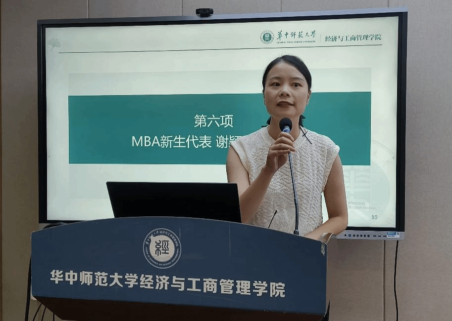 2024级MBA新生代表谢颖同学结合自身的经历,提出要以目标感为指引,以归零心态为基础,以坚持不懈为源动力,携手共进,顶峰相见。