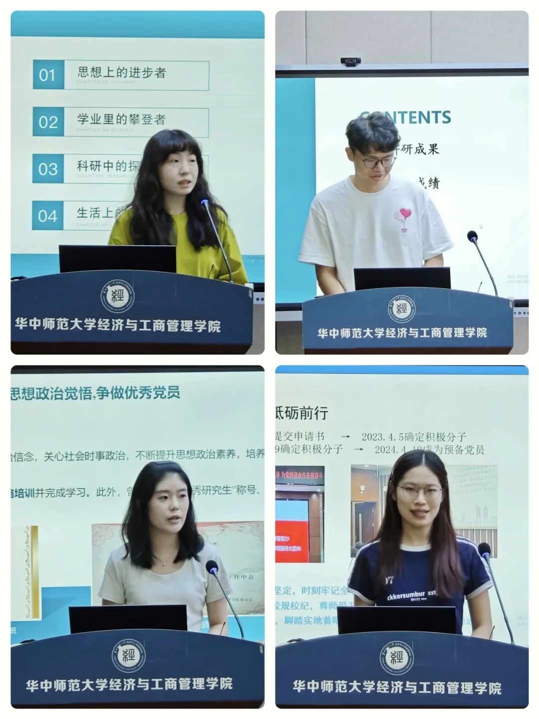 首先,徐杰书记介绍了此次国家奖学金申报的相关情况。经个人申请、辅导员审核,此次共有8位研究生申报了国家奖学金。学院将秉承公平、公正、公开的原则,严格按照《经济与工商管理学院研究生国家奖学金评定实施细则》,从学习成绩、科研成果、思想道德和现场答辩情况等四个方面对他们进行综合评定。