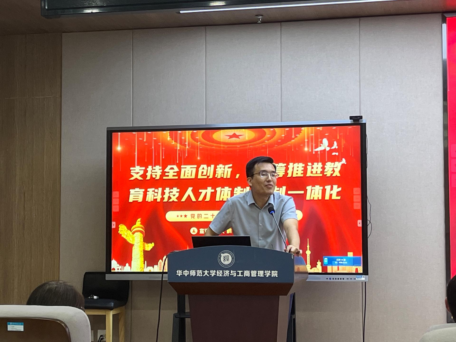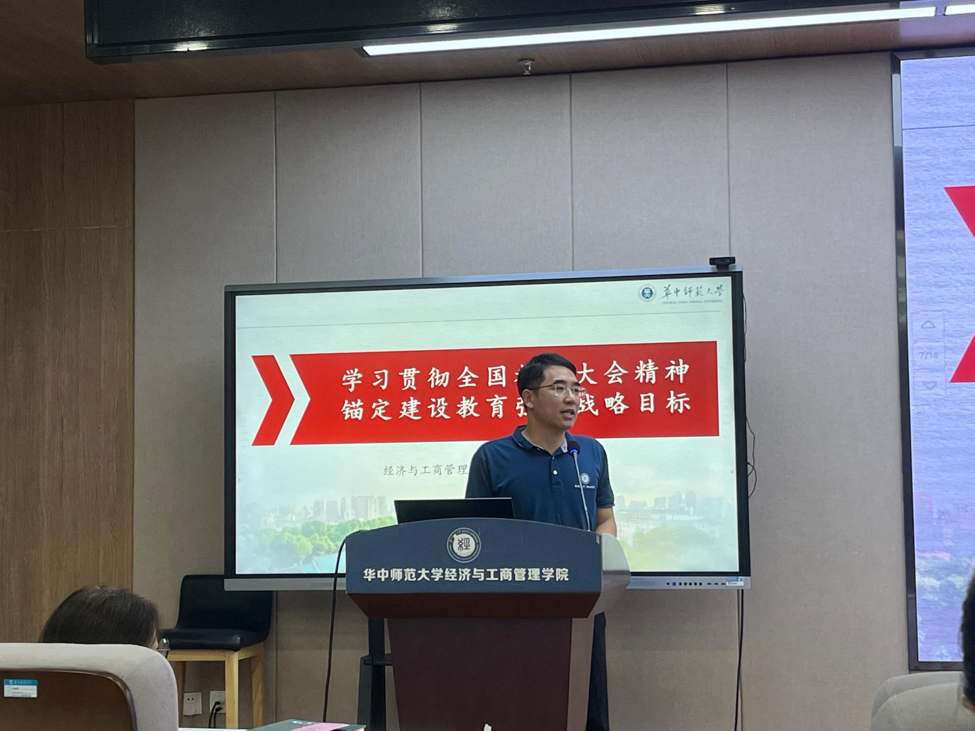 随后,张勇以《学习贯彻全国教育大会精神 锚定建设教育强国战略目标》为题,领学全国教育大会精神。武汉市委宣讲团成员、工商管理系系主任文鹏以《支持全面创新,统筹推进教育科技人才体制机制一体化》为题开展党的二十届三中全会精神宣讲。