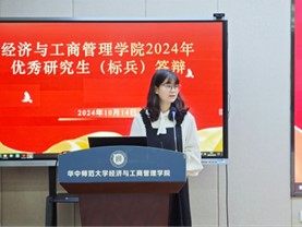 为切实引导学生坚定理想信念、加强品德修养,选树在2023-2024学年有突出表现的研究生先进典型,10月14日上午,我院优秀研究生(标兵)评选答辩会于南湖综合楼10127会议室举行。学院党委副书记陈娟、副院长王治、区域经济学教授刘圣欢、工商管理学教授文鹏、会计学教授李闻一、研究生辅导员赵万担任本次答辩会评委。优秀研究生(标兵)候选人和2024级全体研究生参加答辩会。会议由研究生兼职辅导员李佳蔓主持。
