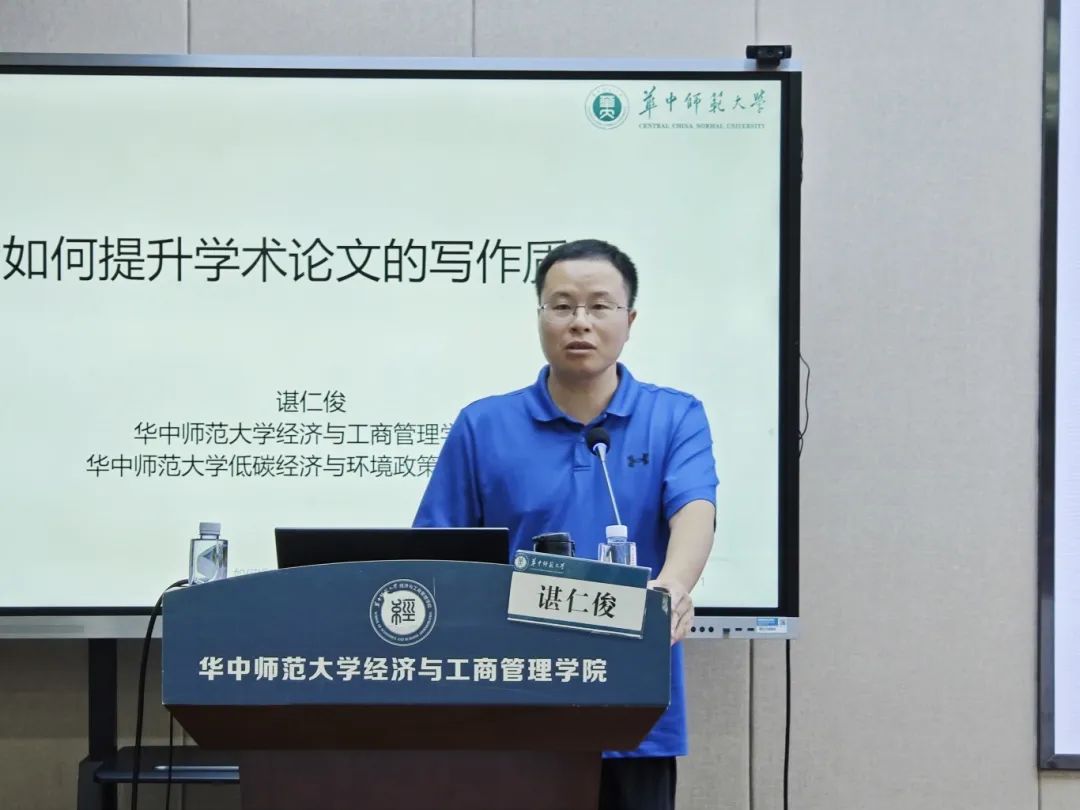 讲座伊始,谌仁俊教授首先强调了学术论文写作的重要性,指出高质量的学术论文是学术研究成果的重要体现,也是学生学术能力的重要标志。接着,谌教授从选题、文献综述、研究方法、论文结构、语言表达等多个方面详细阐述了如何提升学术论文的写作质量。此外,谌教授还分享了自己在学术论文写作过程中的一些经验和体会。他提到,写作是一个不断修改和完善的过程,要敢于面对自己的不足和错误,勇于接受他人的批评和建议。同时,他鼓励学生们要多读、多写、多思考,不断积累并提升自己的写作能力。谌教授以其深厚的学术造诣和丰富的教学经验,为同学们带来了一场别开生面的知识盛宴。