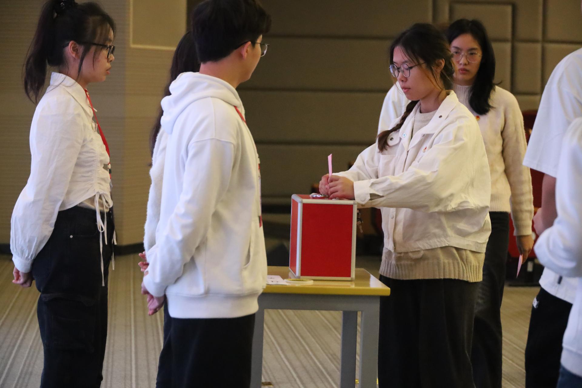 团员们秉持着公平公正的态度,谨慎地投出每一票。总监票人、监票人对此过程进行严格监控并在投票完毕后统计选举结果。