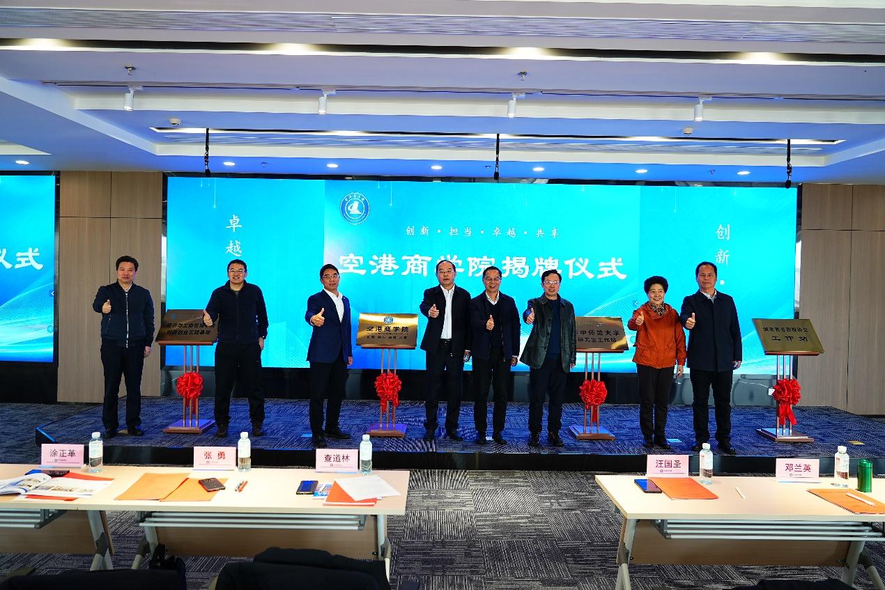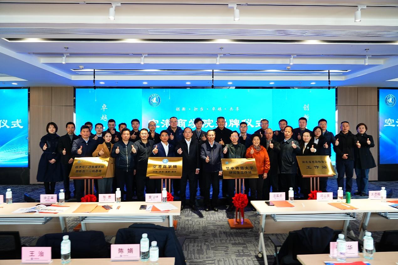 揭牌仪式上,华中师范大学党委副书记查道林对“空港商学院”的揭牌表示热烈祝贺。他表示,华中师范大学与市城投集团公司、临空投集团公司拥有坚实而友好的合作基础,希望未来以“空港商学院”为平台桥梁,双方在师资建设、人才培养、实习实践、创新创业等方面继续深化合作,特别是在应用学科、交叉学科和新兴学科建设、在国际化办学和职业教育培训等方面着力推进校企合作,推动科技成果转化落地,形成推动地方经济社会发展的新动力,为武汉市创新驱动发展战略实施和产业转型升级提供人才、智力和科技支撑。