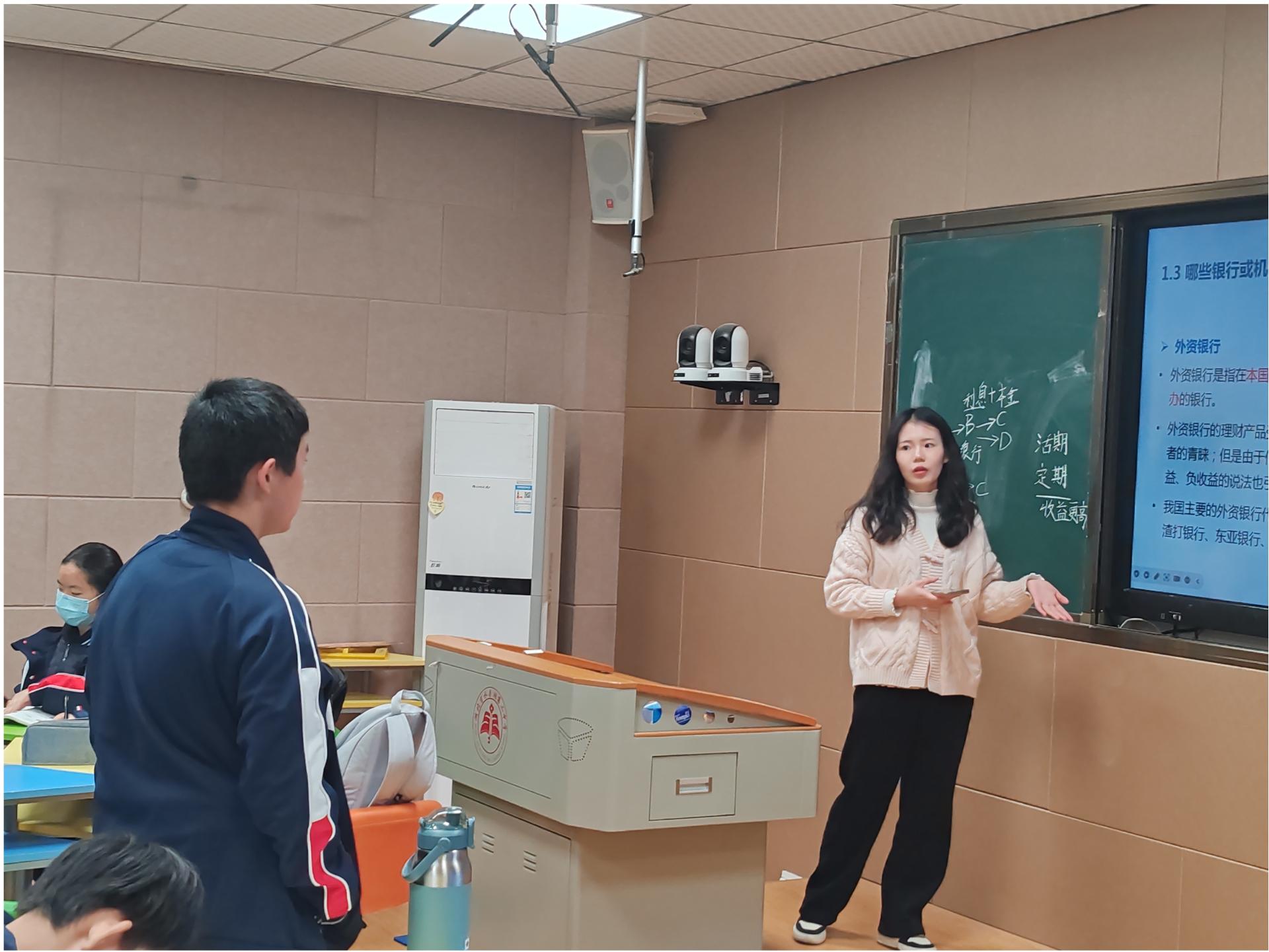 活动主讲人杨虔骋和姚雪文围绕金融领域的关键部分展开深入讲解,课程核心聚焦于储蓄、借贷的收益与风险。在储蓄板块,通过视频形式展现学习内容,介绍了存款方式包括活期、整存整取、零存整取,并详细讲解了银行的特征,如中国工商银行、中国农业银行等。在借贷板块,老师详细介绍了贷款的含义和类型、目的、方式,并从生活的切口提醒同学们注意借贷安全,合理使用零花钱。