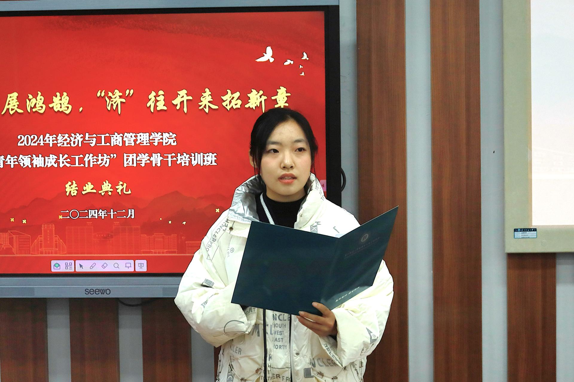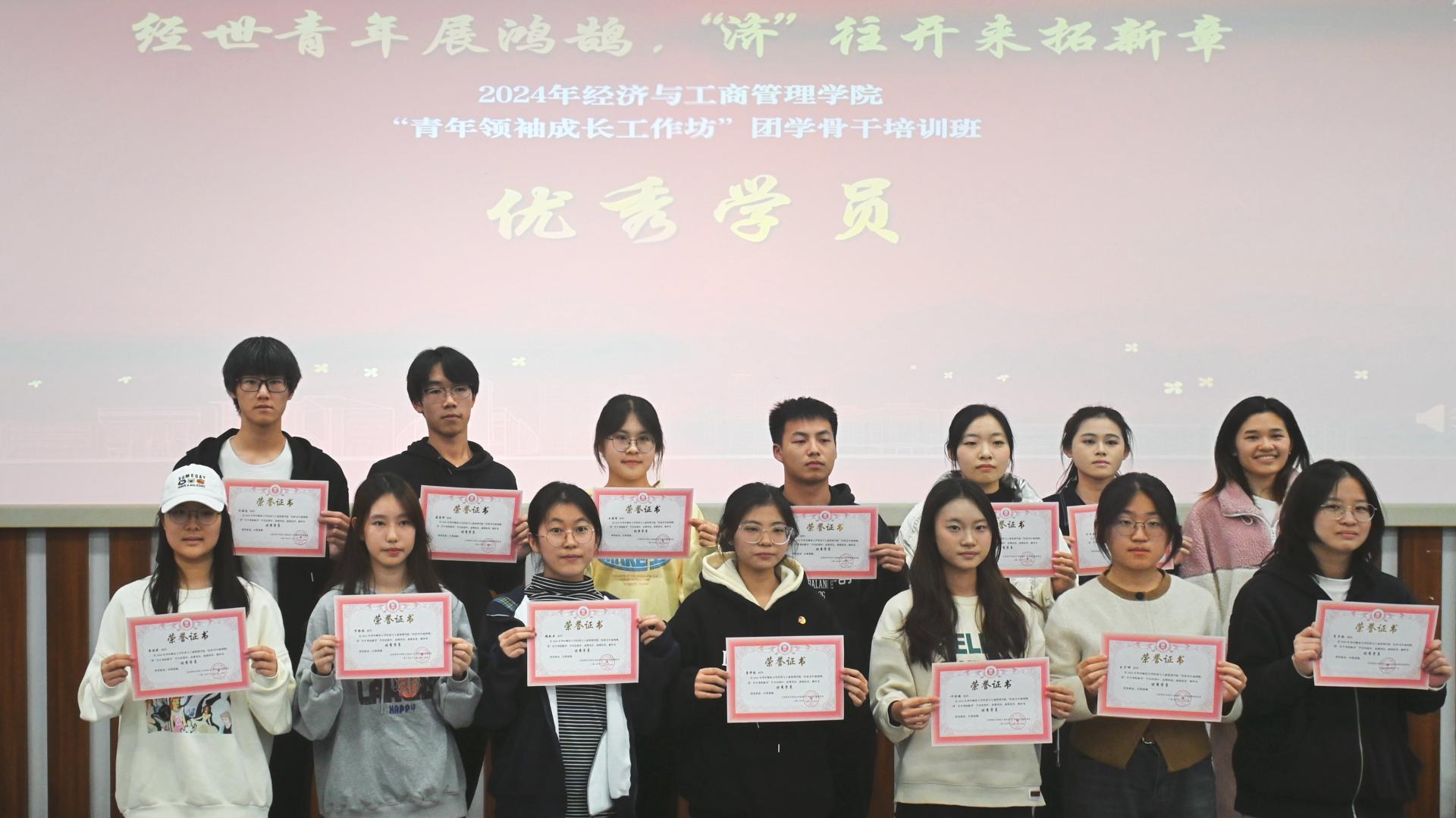 “经”年磨砺青春灿,今朝奋斗志气扬。12月1日下午,我院于南湖综合楼N119教室举办“青年领袖成长工作坊”团学骨干培训班结业典礼。学院团委书记樊启迪,团委副书记彭怡婷出席本次典礼。我院2024年“青年领袖成长工作坊”学员、各部门负责人、新发展团员,本科2024级年级干部、班长、团支书参与本次活动。结业典礼由我院李佳锦、冯潇扬主持。