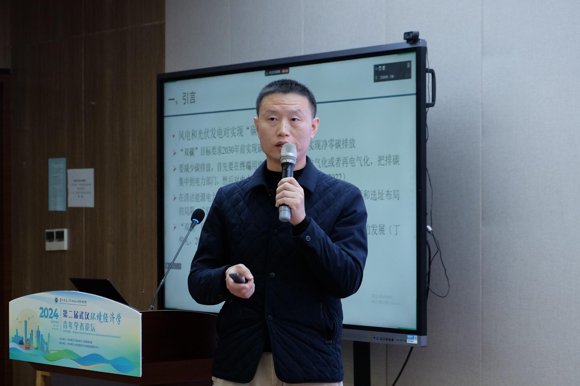 谌仁俊老师进行开幕致辞,他代表我院对武汉同城各高校环境经济学界的青年才俊致以最诚挚的欢迎与崇高的敬意。他介绍出席本次论坛的有四批人,一批是扎根环境经济领域的优秀青年学者,一批是在其他领域做得非常出色再来与环境经济交叉的青年学者,一批是武汉各高校的优秀校友,最后一批是我们环境经济研究的未来,即优秀的博士生、硕士生、本科生。这四批人的汇聚,正彰显我们这个论坛的开放与包容,相信大家都能在里得到充分交流,碰撞出思想火花。