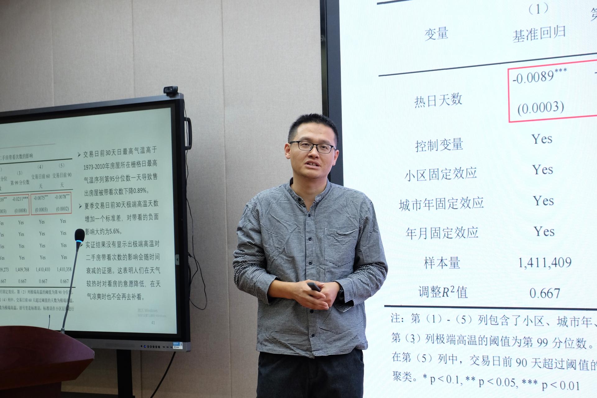论坛下半场专题研讨三由华中师范大学经济与工商管理学院副教授余星主持。武汉大学经济与管理学院长聘副教授逄金栋做以《极端高温影响房地产市场效应及机制探究》为题的论文报告,系统性地考察了极端高温对房地产市场的影响及作用机制。华中师范大学经济与工商管理学院讲师董涵敏报告了论文《Financing for Firms with Higher Climate Risks》,具体分析了机构投资者为气候风险较高的公司融资理由,总结出激励机构投资者更多参与企业气候风险管理的关键因素。在专题三的点评环节,华中科技大学经济学院副教授王班班、武汉大学经济与管理学院副教授李锴两位点评专家以及与会嘉宾就每篇论文展开了精彩的点评,进行了专业的提问,并就进一步完善研究方向、提高研究可靠性提供了思路及建议。
