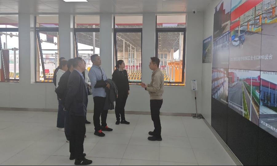 调研第一站是黄石棋盘洲综合保税区。在棋盘洲保税区工作人员的指引下,教研室老师了解了保税区的空间布局、功能配置,参观了区内设施、跨境电商展示区,并围绕保税区内的跨境电商业务的监管流程,以及与区内跨境电商业务相关的跨境物流、交易平台、交易规模等进行了详细交流。