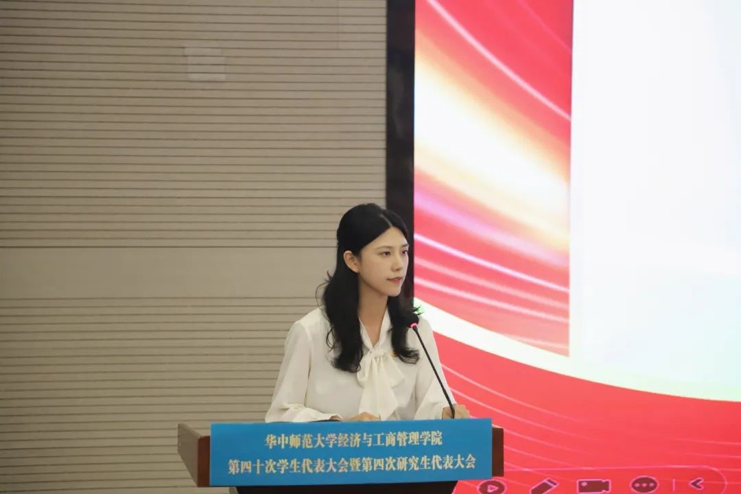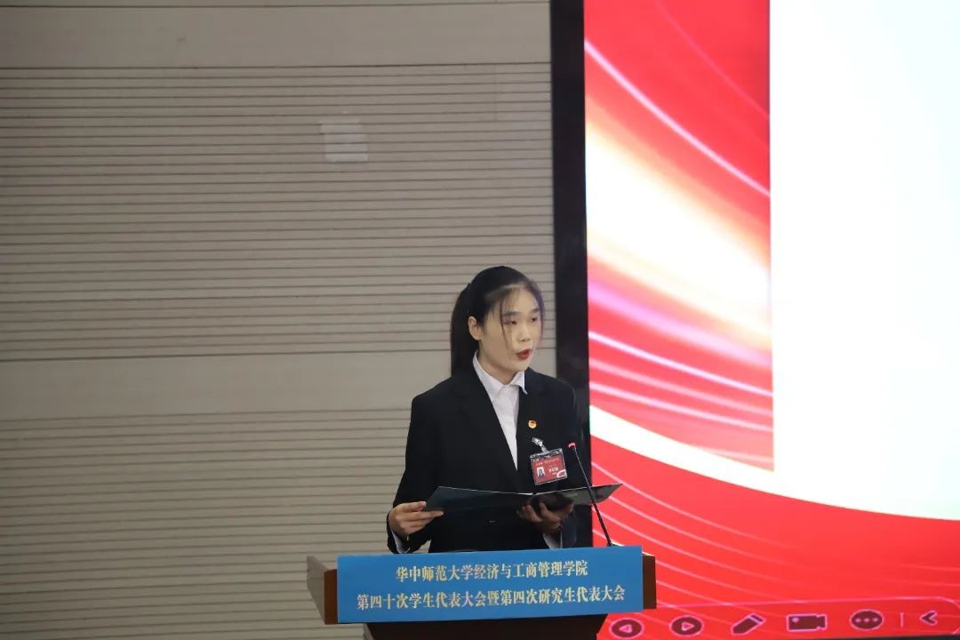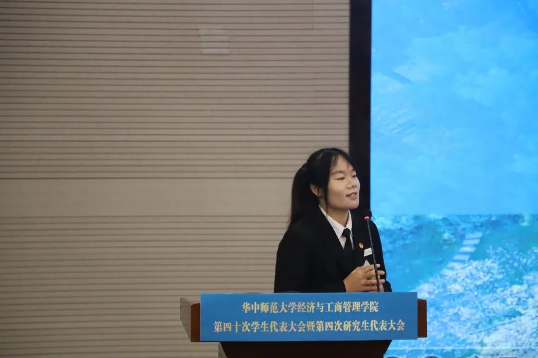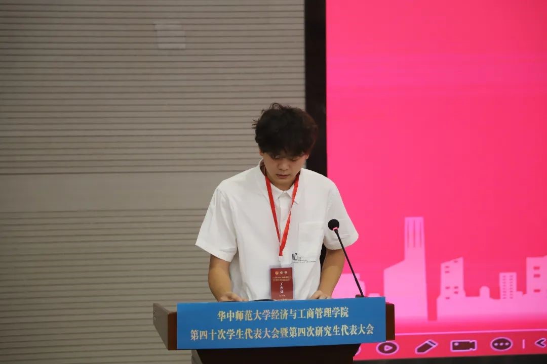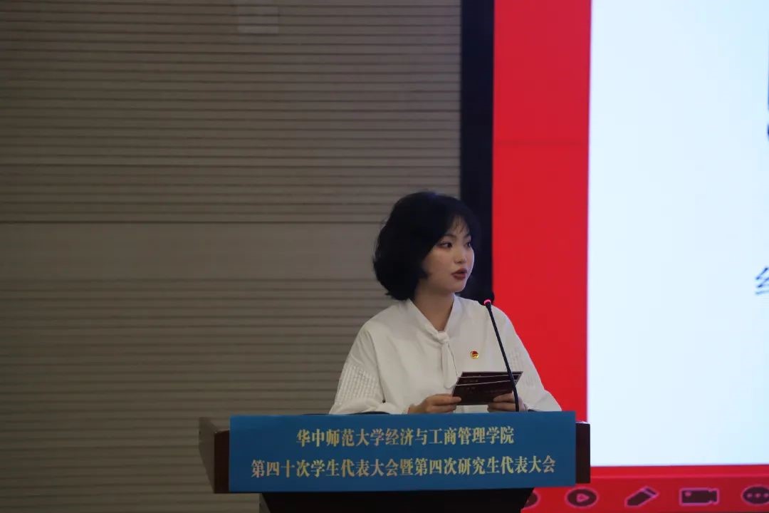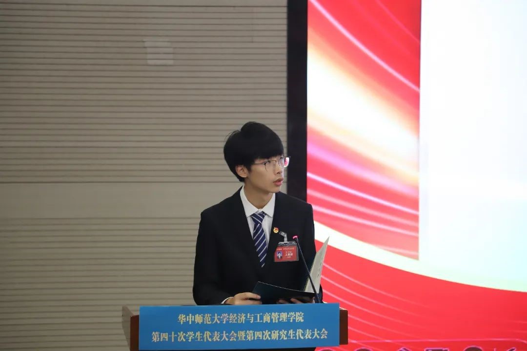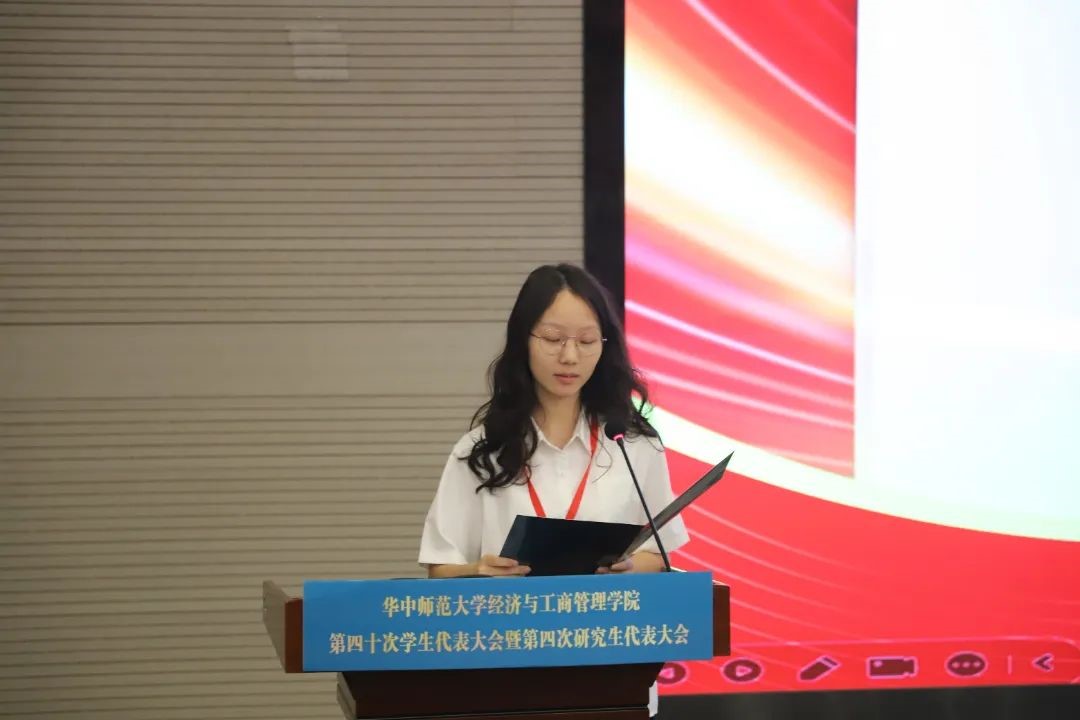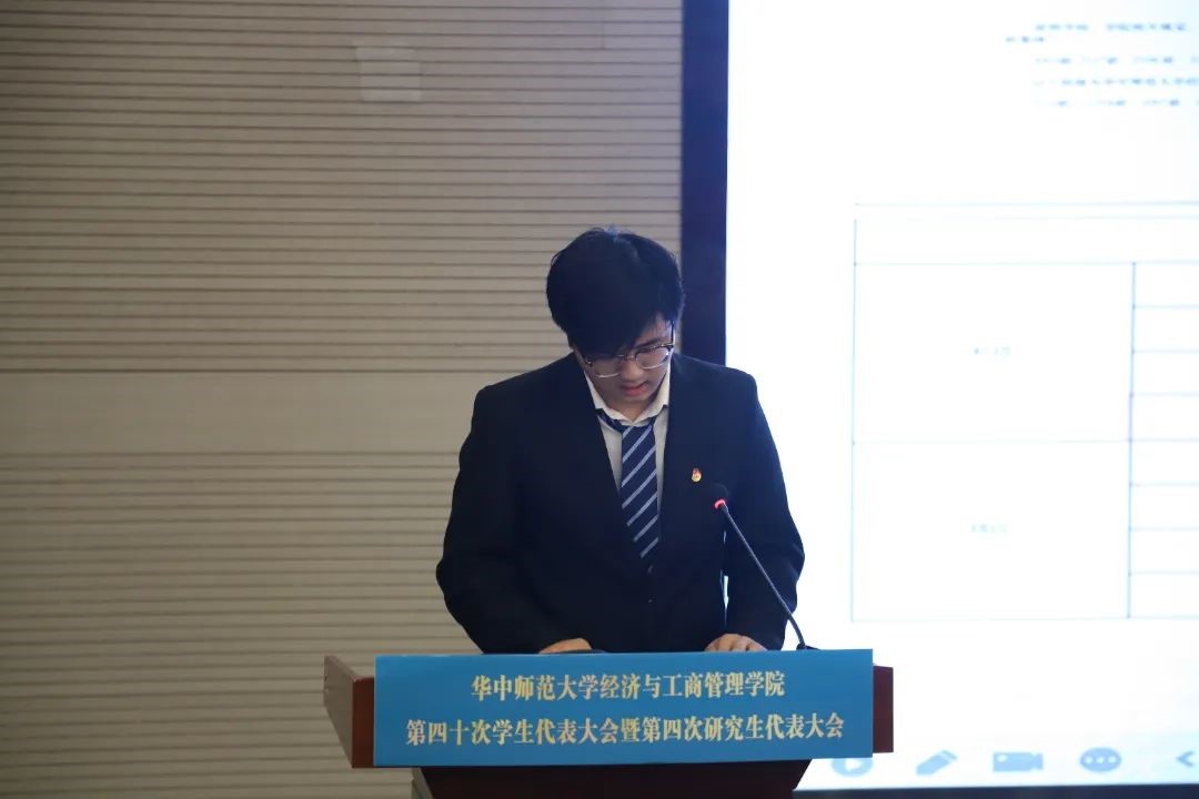 与会代表听取了《华中师范大学经济与工商管理学院第三十九届学生会工作报告(草案)》、《华中师范大学经济与工商管理学院第二十四届研究生会工作报告(草案)》、《华中师范大学经济与工商管理学院第三十九次学生代表大会暨第三次研究生代表大会提案工作报告(草案)》。