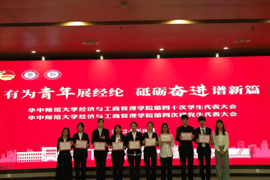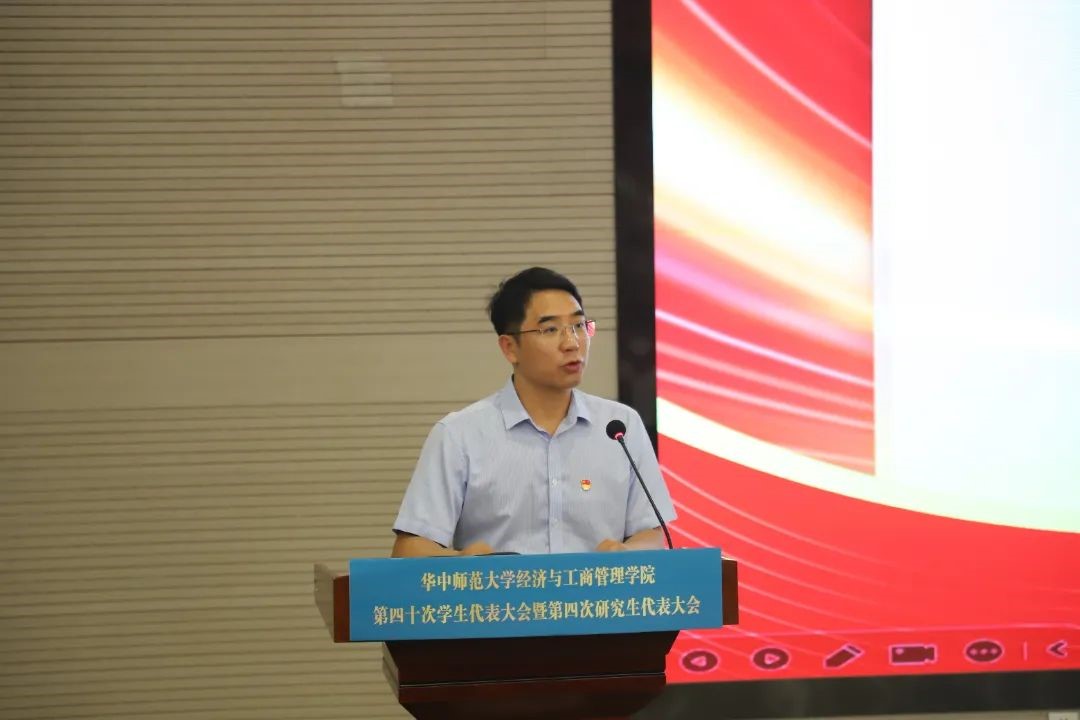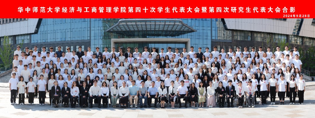 有为青年展经纶,砥砺奋进谱新篇。2024年9月28日,华中师范大学经济与工商管理学院第四十届学生代表大会(以下简称学代会)暨第四次研究生代表大会(以下简称研代会)于南湖综合楼学术报告厅召开。华中师范大学经济与工商管理学院党委书记张勇,正处职组织员徐杰,党委副书记陈娟,校团委校园文化部部长罗金,经济与工商管理学院团委书记樊启迪,团委副书记胡梦旭、彭怡婷,本科生辅导员赵万、岳峥嵘、吴鸿雪,研究生辅导员周子荣、李佳蔓,校学生会主席团成员付佳雯出席本次会议。