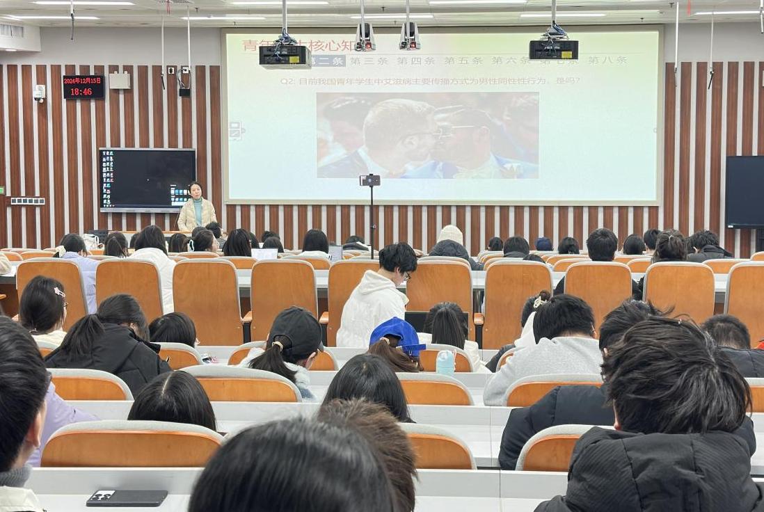 随后,张国华从艾滋病是什么、艾滋病如何传播及其危害、艾滋病感染如何预防、青年学生预防艾滋病的责任等方面向同学们展开详细讲解,并教育同学们要从自身做起,抵制诱惑,洁身自好,养成健康的生活方式。最后,她呼吁大家关注艾滋病防治,为构建一个健康、和谐的校园环境贡献自己的力量。