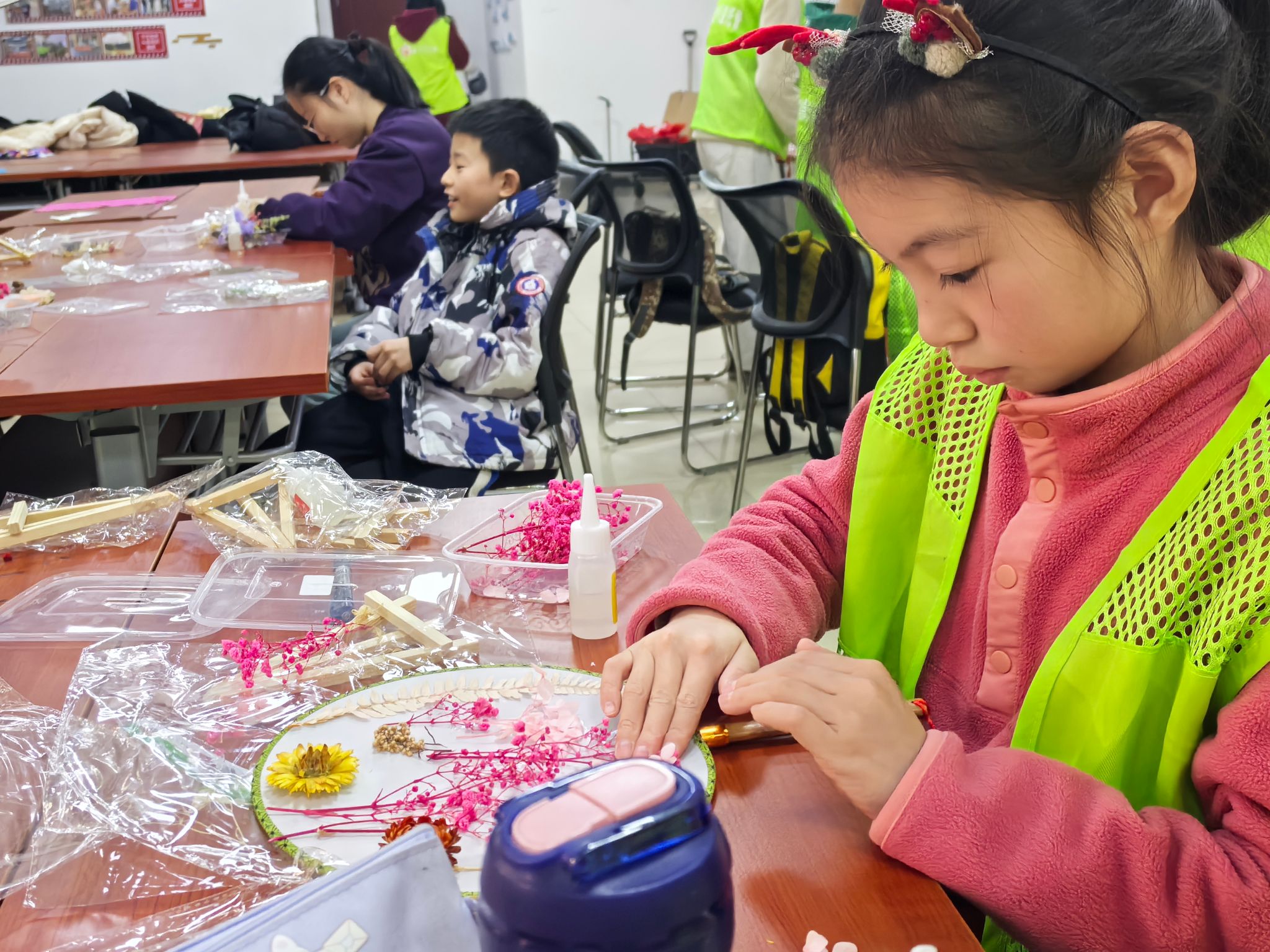 在多元课程中,“工艺团扇”别具一格。课程伊始,社区老师借助图片与实物,讲述团扇的千年发展历程,孩子们完全沉浸于传统文化的独特魅力中。随后,在志愿者的帮助下,孩子们充分发挥想象力,用干花材料装饰扇面,相互交流学习,创造出了一幅幅独一无二的作品。通过这堂课,孩子们不仅在真切体验到了传统手工艺的魅力,还在创作过程中培养了耐心和细心,提高了团队协作能力。