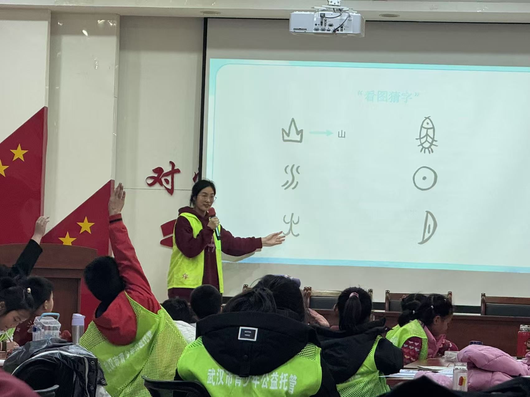 与此同时,“汉字的秘密” 从文化根源入手,为孩子们带来了一场充满乐趣的文化探索之旅。该课程以趣味讲解开场,志愿者老师从甲骨文的象形符号讲起,阐述汉字的起源与演变,让孩子们直观感受汉字发展的奇妙历程。此外,老师还拆解会意字、形声字,让孩子们了解汉字规律,并通过猜字谜等活动激发其参与热情,加深记忆。通过此次课程,孩子们不仅提升了识字、写字能力,更领悟到了汉字蕴含的古人智慧与文化底蕴,增加了对中华传统文化的热爱。