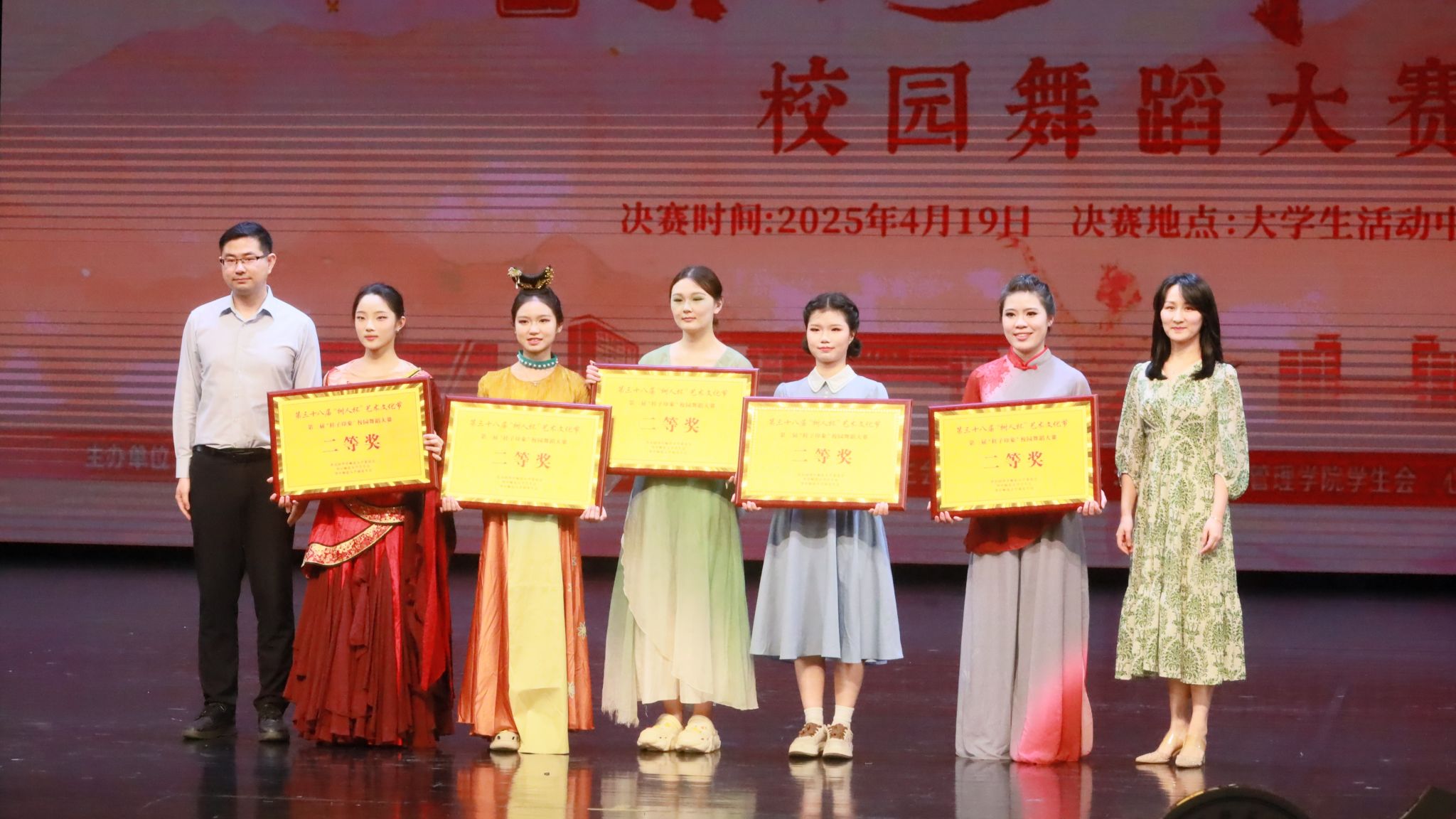 2025年4月19日晚,华中师范大学第三十八届“树人杯”艺术文化节系列活动、第三届桂子印象校园舞蹈大赛于华中师范大学新大学生活动中心大礼堂隆重举行。我院代表队凭借舞蹈作品《Another day of sun》,以精湛的技艺与饱满的艺术感染力从众多参赛队伍中脱颖而出,斩获赛事二等奖,为学院再添荣光!