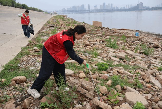 尽管党员同志们全力以赴,尽力清理每一处可见垃圾,但仍有一些深埋在石头、泥土中的塑料袋、塑料棒、橡胶制品等难以彻底清除。经过近两个小时的努力,党员们沿着武昌江滩一侧沿岸清理了近600米的区域,共捡拾了10余袋垃圾。然而,武昌江滩总长约10公里,可见江滩环境保护工作任重道远,仍需付出更多努力。