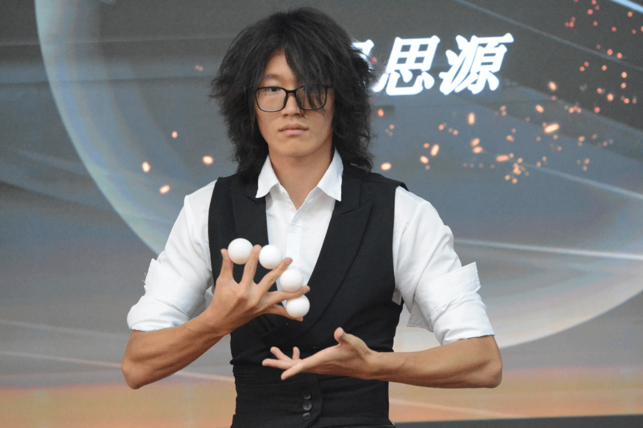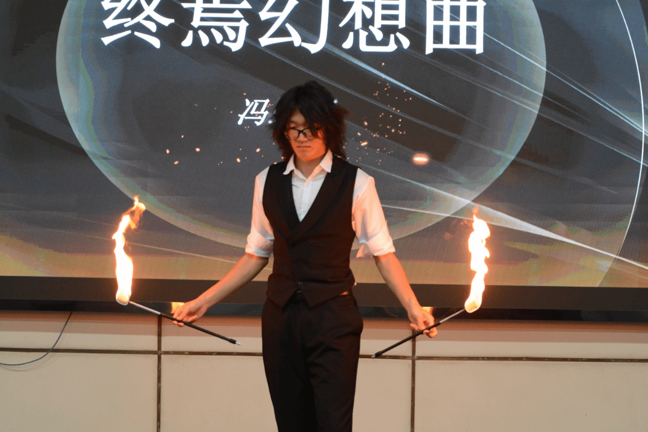 下半场,杨锦泽的《just for fun》带着轻松诙谐的魔法氛围而来。他巧妙的手法与幽默的互动,让观众们在欢笑中感受魔术的魅力,现场气氛愈发高涨。樊忠萌的《罗圈献彩》,神奇的罗圈仿佛藏着无尽宝藏,一次次变出绚丽物品,引得观众们掌声雷动。杨雨洁的《小飞棍来咯》,那小小的飞棍在她手中仿佛拥有魔力,瞬间出现又瞬间消失,令人目不暇接,现场惊叹声不绝于耳。赖紫薇与李雅的《双人幻变》,二人默契配合,在光影交错间完成一次次惊艳变身,观众们看得如痴如醉,纷纷为这奇妙表演喝彩。王睿的《钉钉历险记》、廖念杰的《我不是预言家》、冯思源的《终焉幻想曲》等节目也都各有千秋。每一个魔术都像是一把开启神秘之门的钥匙,带领观众们穿梭于现实与幻想之间。