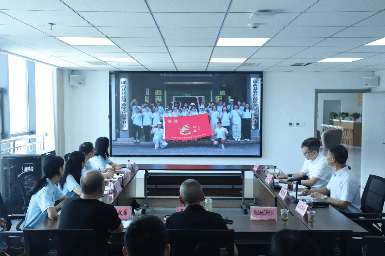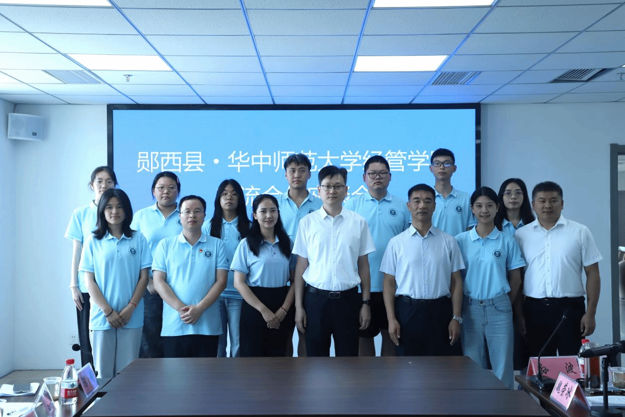 近日,华中师范大学鸿鹄实践队师生在十堰市郧西县围绕乡土发展与低碳节能等主题开展实践调研。为推动校地合作深入发展,6月29日,郧西县与华中师范大学经济与工商管理学院(下称经管学院)交流合作座谈会在科创大厦人才超市举行。郧西县委常委、组织部部长孙波,湖北汉江瀑布群国家森林公园管理局局长、县委人才办主任、县科协党组书记、主席魏荣冰,华中师范大学经管学院党委副书记陈娟、副院长谌仁俊、团委书记樊启迪、团委副书记彭怡婷出席本次会议,部分单位、企业代表及鸿鹄政务实习队队员参加本次会议。
