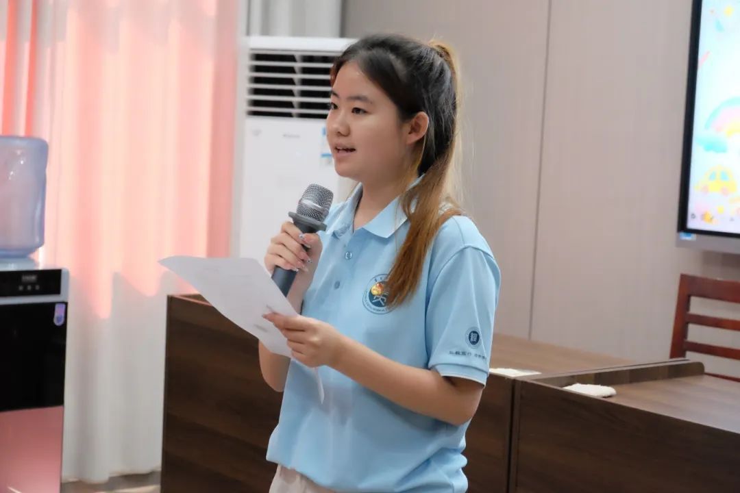 微光“童”行队队长刘昱潼代表全体支教队成员发言。首先她表达了对李埠小学各级领导、老师对的由衷感谢。她表示,在接下来的时间里,微光“童”行队全体队员们将牢记“求实创新、立德树人”的华师校训,秉持“忠诚博雅,朴实刚毅”的华师精神,用行动诠释“师者”内涵,用言语展现新时代青年的风采风貌,让每一个孩子都能在知识的滋养中自信成长。此外,她结合自身经历,鼓励同学们积极参与活动,多多举手提问,与支教队员们在交流互动中实现爱与智慧的双向奔赴。