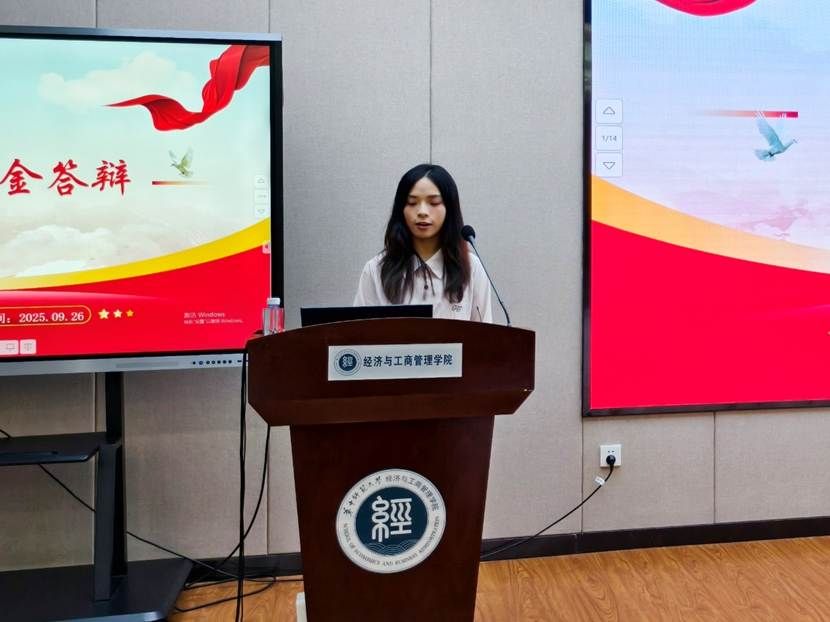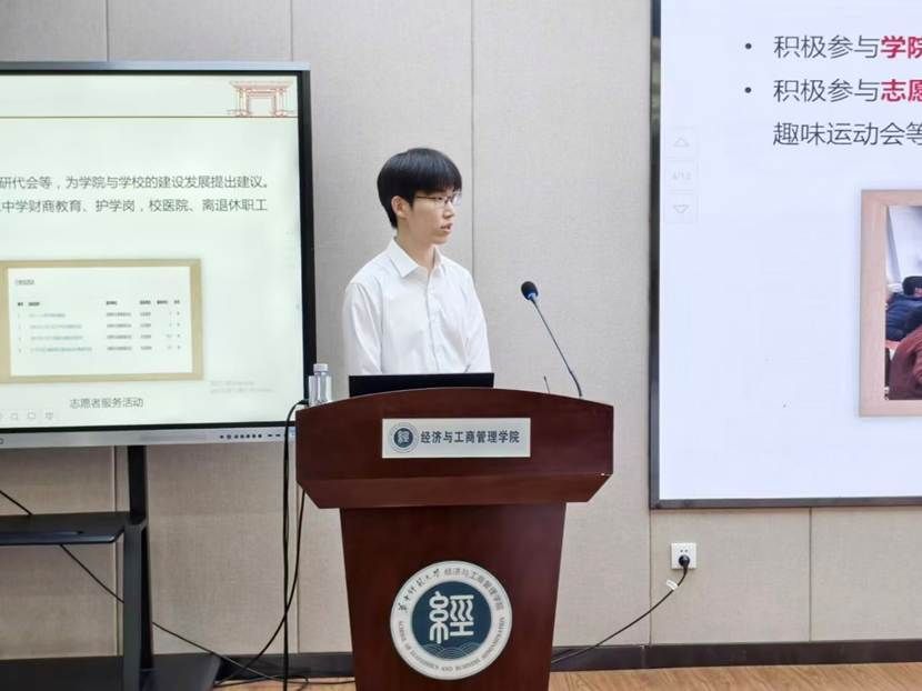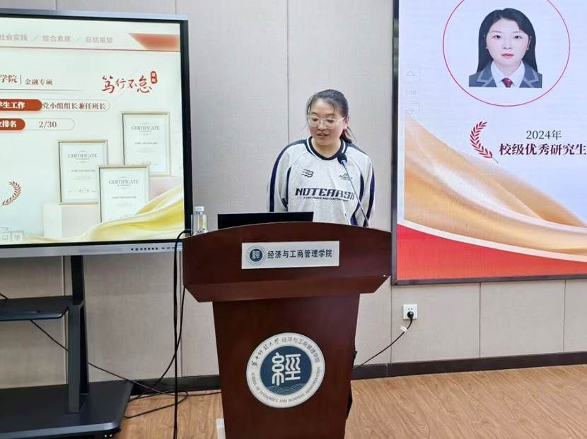 随后,2023级与2024级的19位硕士研究生候选人依次登台,进行限时陈述。在紧张而有序的答辩会上,各位优秀学子尽展风采,他们围绕学业成绩、科研创新与社会实践等多个维度,全面而精炼地汇报了自己在过去一学年中的成长与收获。在学业方面,候选人们展现了扎实的专业功底,多位同学学业成绩名列前茅;在科研领域,候选人们的汇报内容涵盖了高水平学术论文的发表、资政报告被中央、省政府有关部门采纳的经历,以及在高等级学术科技竞赛中的获奖情况;在社会实践与综合素质方面,多位候选人分享了在学生工作、志愿服务、社会调研、知名企业实习等方面的丰富经历,展现了新时代研究生知行合一、担当奉献的全面素养。
