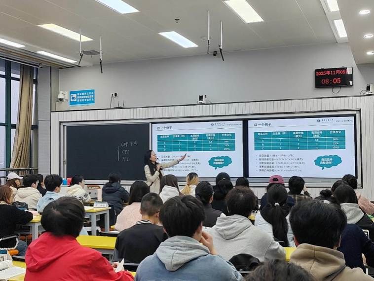 本次课程聚焦“通货膨胀”这一宏观经济核心议题。赵晓梦老师以扎实的专业功底和丰富的教学经验,从“货币加零”的思想实验入手,结合二十世纪恶性通货膨胀的历史资料,引导学生深入理解通货膨胀“普遍、持续”的核心特征。她通过“三不是、三而是”的辨析方式,清晰阐释了通货膨胀的定义,并系统讲解了CPI、PPI、GDP平减指数等关键价格指数的区别与应用。