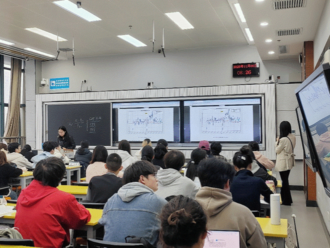 2025年11月6日,经济与工商管理学院赵晓梦副教授主讲的《宏观经济学》课程备受瞩目,为师生们带来了一场深入浅出、生动形象的知识盛宴。学院领导文鹏副院长,学校评委陈九民教授、李睿教授、田媛教授,学校督导周维第教授、学院督导吴艳副教授,以及青年教师代表朱俊鹏副教授、曾艺副研究员旁听了此次课程。