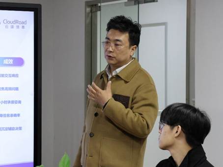 在此后的座谈环节,校企双方围绕人工智能、数字经济与人才培养新模式的主题进行深入的交流和探讨。武汉云途信息系统有限公司总经理陈祎向同学们介绍了公司的明星产品——“星瞳AI”场景智能体平台,介绍了该平台在校园教务管理、学工服务、招生就业等多场景的创新应用,展现了AI技术对推动校园服务的数字化升级、全面提升校园服务品质的重要作用。