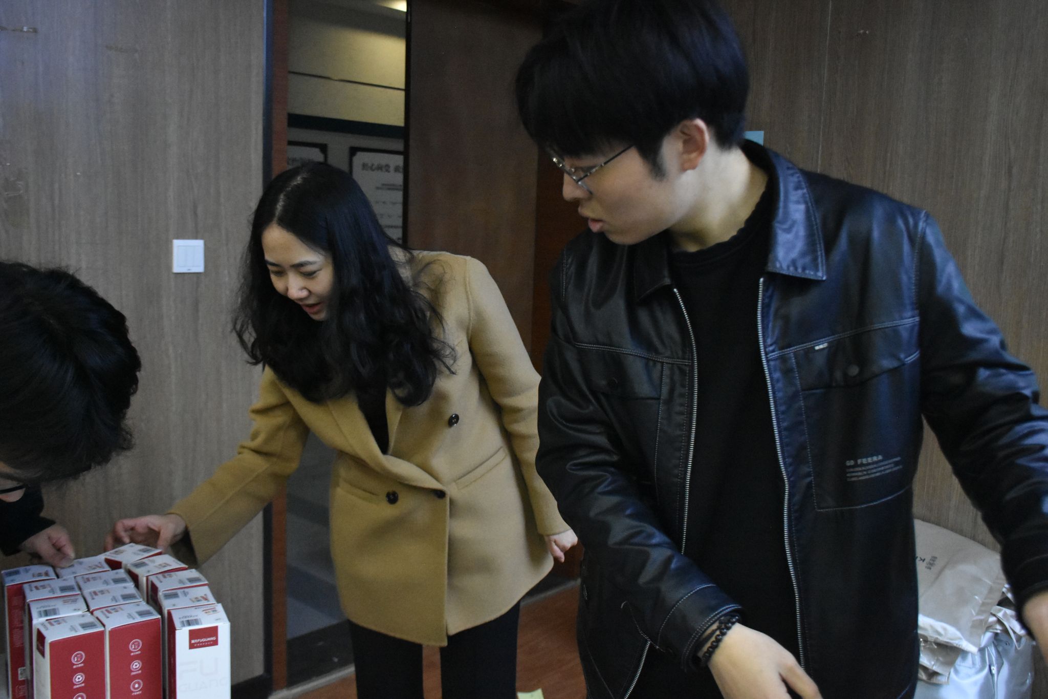 在温馨的致辞后,活动进入物资发放环节。同学们按年级有序上台,学院领导与老师们亲手将饱含关怀的保暖物资递到每位学子手中,现场洋溢着温馨的氛围。