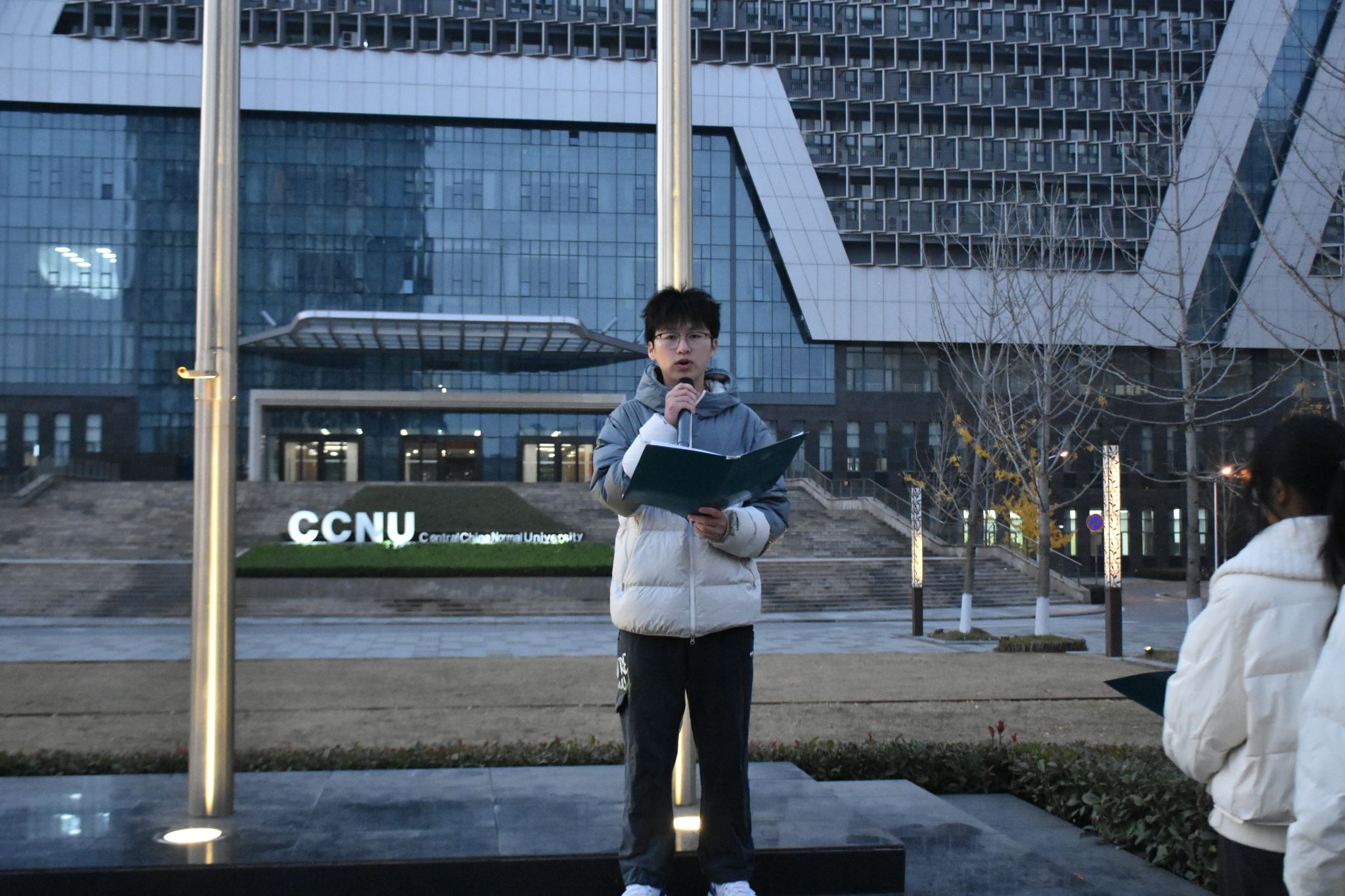 为弘扬法治精神,传递法治力量,激励青年学生勇担青春使命,12月1日清晨,我院在南湖教学实验综合楼广场举行“法润人心,与‘宪’同行”升旗仪式暨鸿鹄团支部主题团日活动。本次活动由我院团委组织部负责人张琳钰主持,团委书记樊启迪、团委副书记张宇、团委副书记彭怡婷、学院团委职能部门与第四十一届学生会全体成员及2025级全体同学与新发展团员共同参加。