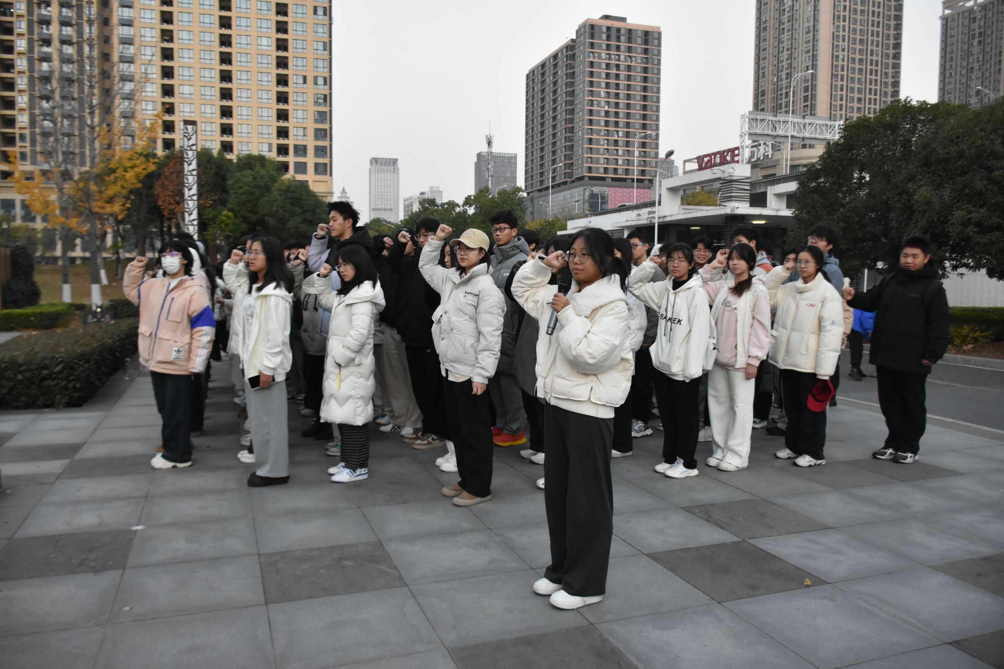 最后,在主持人张琳钰的带领下,全体成员面向团旗,高举右拳,宣读入团誓词,激昂的誓言在蓝天初阳下回荡,彰显了青年学生们为共产主义事业奋斗终生的坚定信念。