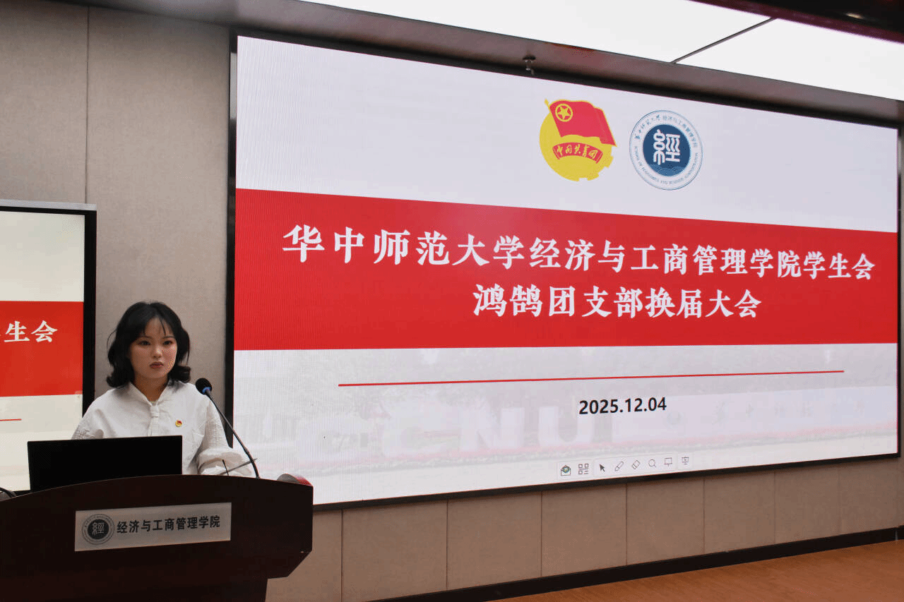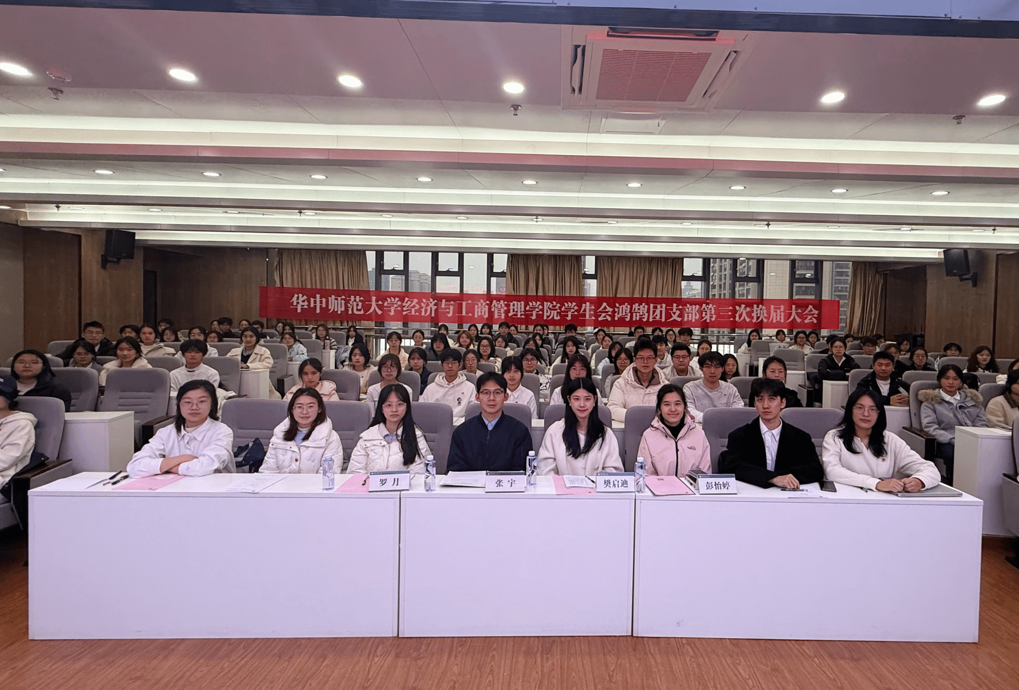 为加强团学骨干队伍建设,保障工作有序承接,12月4日中午,经济与工商管理学院学生会鸿鹄团支部换届大会在南湖综合楼10127顺利举行。学院团委书记樊启迪、团委副书记张宇、彭怡婷及华中师范大学第七十四届学生会主席团成员罗月出席此次会议。