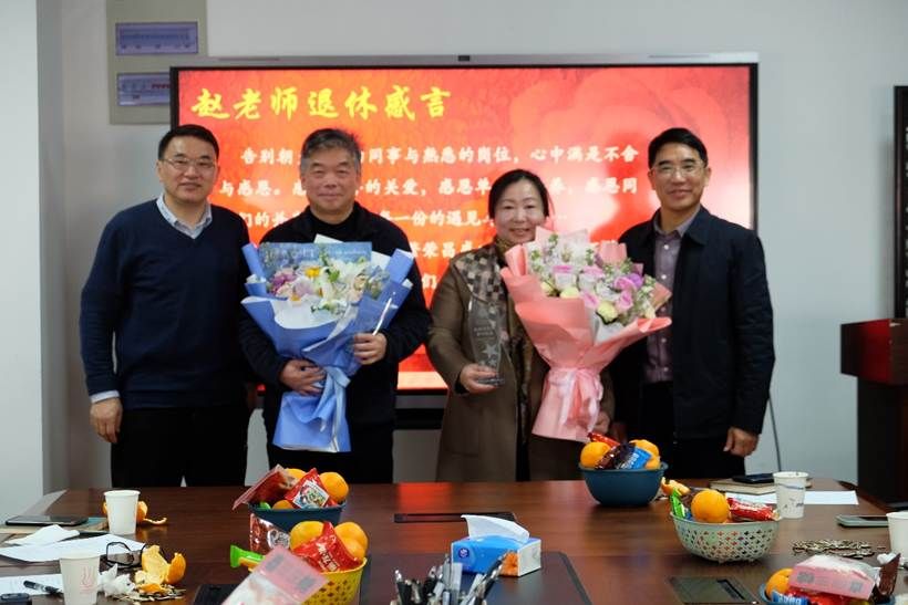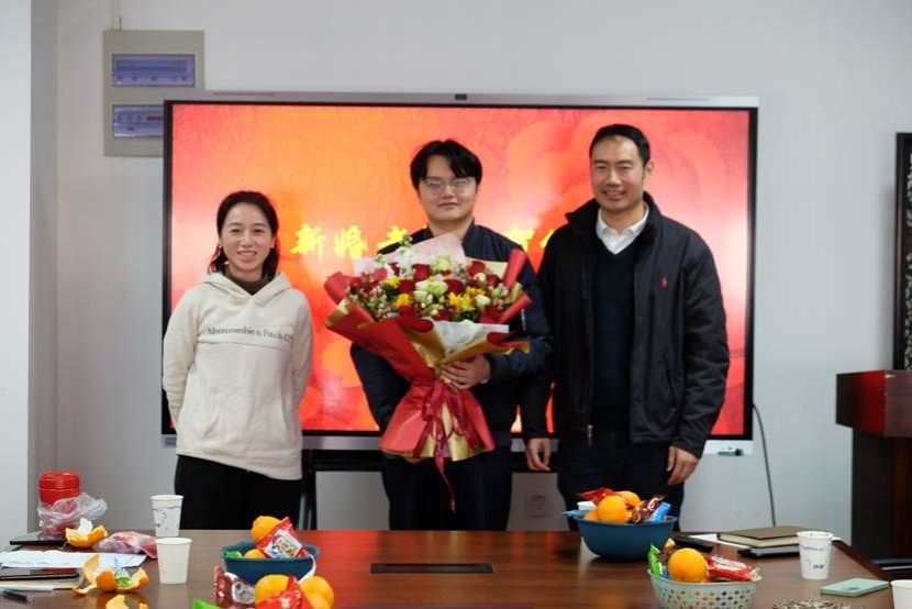 仪式第二项,为新进教师赵仲匡、马梦帆、陈立、王空举行欢迎仪式。三位到场老师从学习经历和教学初体会出发,表达了对“教学相长”的欣喜、对学院领导和老师们的感谢和对未来工作的期待与向往,并纷纷表示要向荣休教师学习,不忘立德树人初心,牢记为党育人、为国育才使命。随后,学院领导向新加入的老师表达了诚挚欢迎,肯定了他们饱满的工作热情与积极的工作态度,希望他们能在学院的工作岗位上履职尽责、勇创佳绩,争做中流砥柱。随后,庆贺岳峥嵘老师新婚。从相识到相知,从相知到相伴,岳老师与大家分享了自己的喜悦,与会老师们也纷纷为他们送上祝福,现场笑声不断,氛围欢乐融洽。