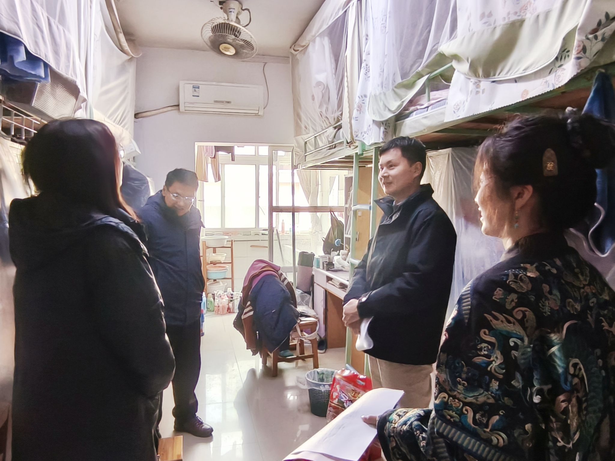 “假期在学校过得怎么样?”“有没有什么困难需要学院帮助解决?”走访过程中,学院领导与学生们亲切交谈,细致询问同学们寒假期间的学习计划、假期安排和日常生活情况,并鼓励他们充分利用假期时间,提升专业技能,为未来的职业生涯打下坚实基础。老师们还特别强调了安全问题,提醒同学们遵守学校宿舍管理规定,注意用电安全,做好个人防护,保持与家人的日常联系。
