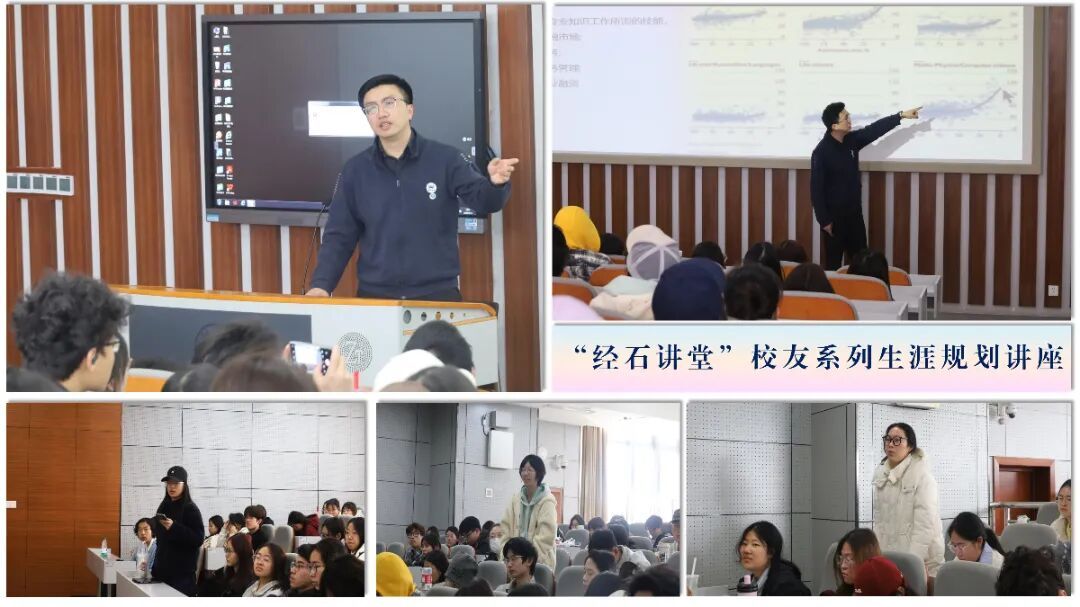 为进一步加强校友联络,做好大学生生涯规划教育,3月11日下午,学院在南湖综合楼223教室开展“经石讲堂”校友系列讲座。本次讲座特邀我院国际经济与贸易专业2006届优秀校友、上海淳阳私募基金管理有限公司董事长兼投资总监、学院校外实践导师谢伟玉先生回到母院,以《经济与金融学子的成长之路》为题,为在座的学弟学妹带来了一场干货满满、启迪深刻的生涯规划课。学校校友工作办公室、发展基金会李方红老师、学院党委副书记汪亭亭、MBA教育中心执行主任魏伟教授出席讲座。